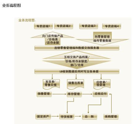 关键价值:实施用友U8后,规范管理流程,调拨、零售和开票回款情况在系 统里一目了然。通过ERP系统产生单据和报表,随同送货传至仓库和专卖店管理人员,实时全程监控,降低仓库管理人员随意报损可能性。掌控零售数据,清晰异 地库存,精确生产计划,提高客户配套率和总体满意度。
