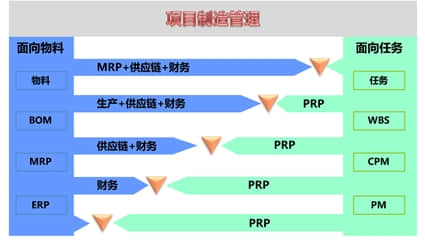 项目制造的难题就在于首先需要打造一个集成的计划系统,这个系统必须有机的将CPM(网络计划)、MRP(通用物料)、PRP(项目专用物料)三个引擎做无缝的对接。