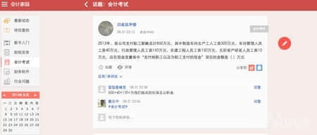 “会计家园”和“易代账”则是围绕全职 / 兼职会计这一群体打造的应用:会计家园是针对会计群体的垂直化社区,莫俊琦告诉36氪,会计群体非常特殊,有大量培训考试要求,也需要即时了解国家法律政策相关内容,所以“会计家园”更像是一个社区 + 在线教育平台,包含商务社交,教学视频以及问答等成分。在体验后感觉这个平台很像会计版知乎。