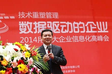 用 友软件股份有限公司高级副总裁朱铁生先生随后做了大会的主题演讲——《数据驱动的企业》 。朱总指出过去以流程为中心,现在以数据作为核心计算,计算本身发生了变化。企业管理升级是势在必行的阶段,数据驱动的企业如同电子消费品从模拟走向数字 化革命一样,是全球企业的一场变革。朱总为峰会来宾呈现了一种企业管理的新世界——从“数字说话”到“数据驱动”。