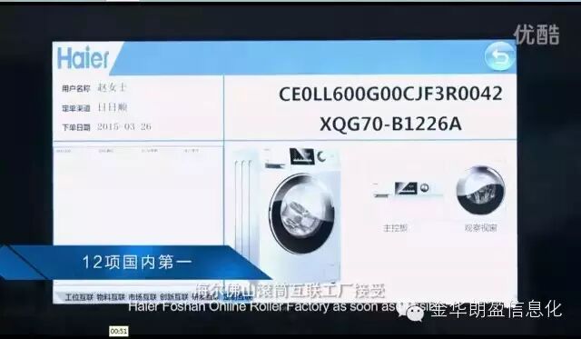 2、 订单跟踪:全球用户在下单后,拿起手机,就可以看到实时的生产信息,比如何时排产、何时上线、何时发货等。用户甚至可以看到他(她)的洗衣机在生产线上的哪个位置,正进行哪一步工序。