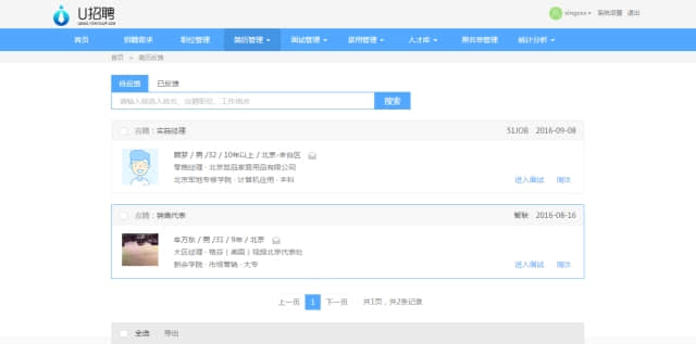 发布职位成功后,通过U招聘系统,从多个招聘渠道自动收集简历。