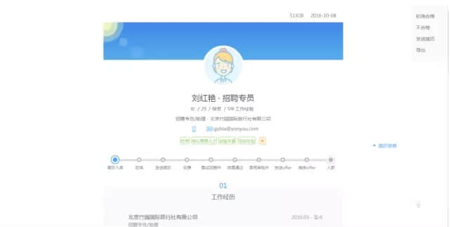 收集业务部门招聘需求后,将职位一键发布到前程无忧、吴江人力资源网。