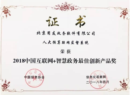 一直以来,用友政务以其创新能力及用心经营的理念,为客户提供可感知的价值,赢得了客户信赖,在业内一直处于领先地位,公司荣获“2018年中国互联网+智慧政务最佳创新产品奖”、“2018年中国互联网+智慧政务创新企业奖”两项大奖实至名归。