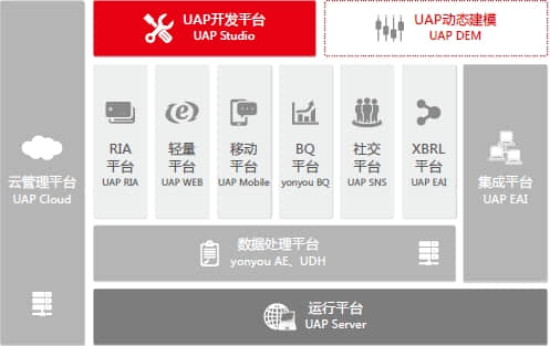 截止到目前,用友UAP平台已经发展成为包含:移动平台、云管理平台、数据处理平台、商业分析平台、开发平台、集成平台、动态建模平台、WEB平台、RIA平台、XBRL平台等十几个平台,有了这些产品,无论企业的信息化处于哪个阶段,用友UAP平台都可以支撑企业在UAP平台上做出符合他们需求的应用系统。