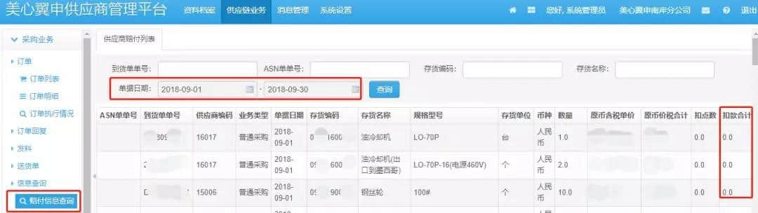 这是我展示的一个信息的点,就是供应商送货这是入库的时候,应该是不合格的产品,这里面也有体现,并且要扣多少金额都可以看清楚。
