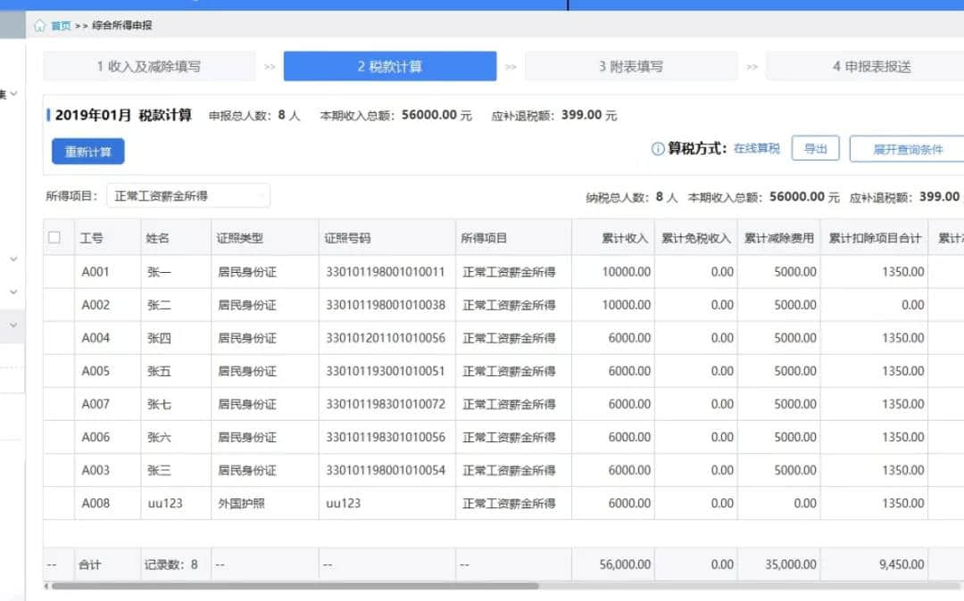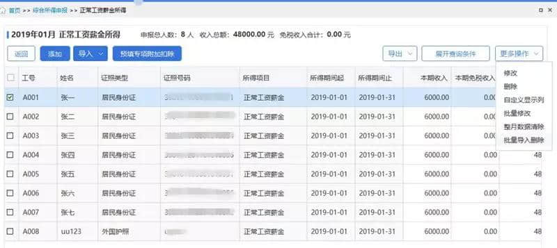 3、扣缴客户端支持扣缴单位对所有员工进行全量更正,也支持仅对有错误的员工进行个别更正。
