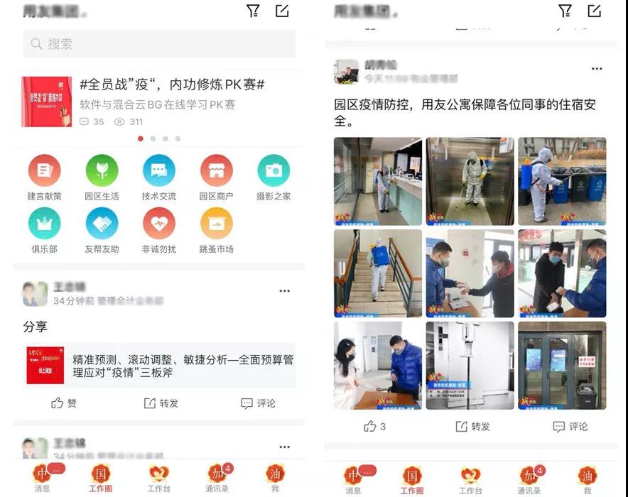 疫情期间,远程办公怎样分享实时工作状态?遇到业务问题去哪儿全员在线求助?新鲜事儿怎么分享给同事?企业内热门话题、投票怎么搞?用友空间工作圈就足够了。