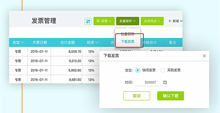 在发票管理列表,可直接下载发票明细数据,包括完整的票面信息