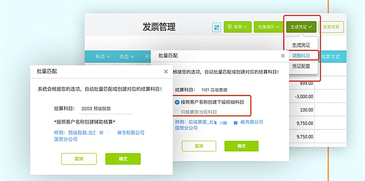 智能批量匹配及创建。无需单条发票标记科目,可直接批量匹配井创建所需科目;