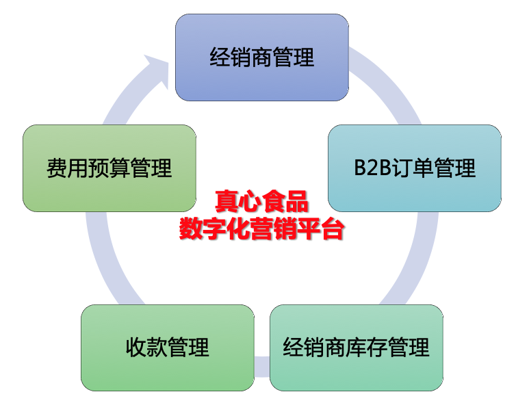 经销商管理是真心食品整个销售供应链里面重要的一环。最核心的几个环节就是:经销商管理、B2B订单管理、经销商库存管理、收款以及费用管理。