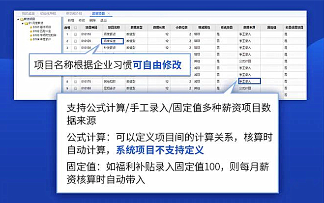 通过系统管理-功能启用-启用薪资管理进行启用,系统已预支薪资项目与薪资类别,企业也可根据自身需求进行自定义薪资项目设置,薪资类别设置支持IF函数。