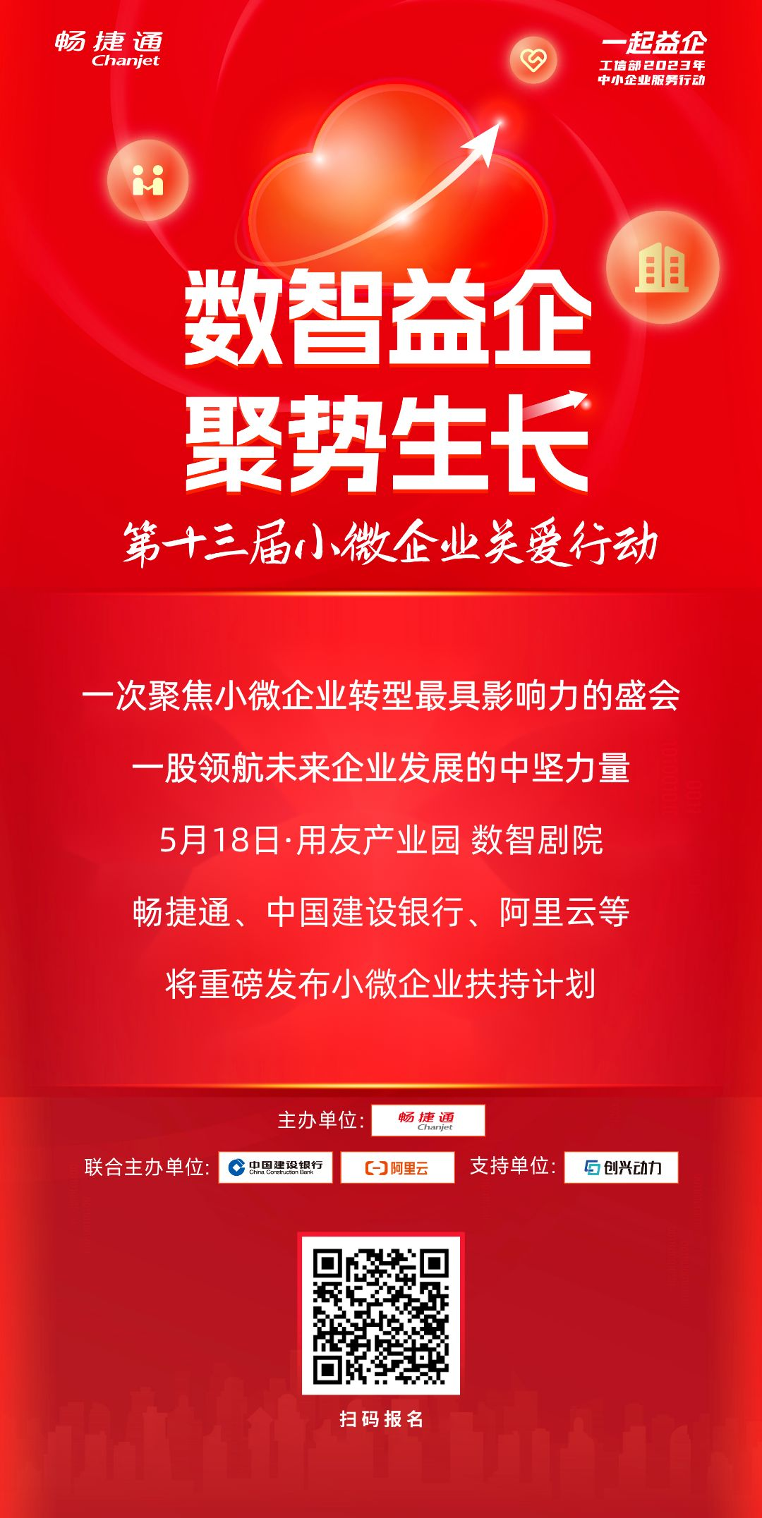 第十三届小微企业关爱行动将于5月18日盛大开启,畅捷通将联合众多生态伙伴协力赋能小微企业,助力小微企业紧抓数智机遇,数智益企,聚势生长!