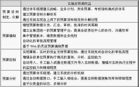 企业在实施预算系统后预期能够在以下方面得到改善和提升: